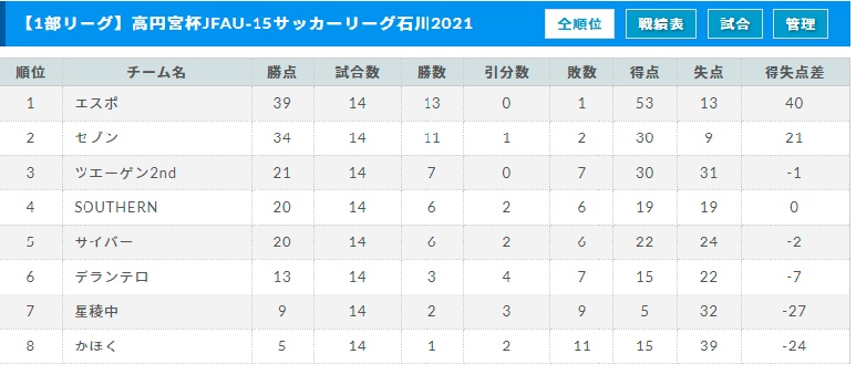 高円宮杯JFAU-15サッカーリーグ2021 第13回石川県1部リーグ